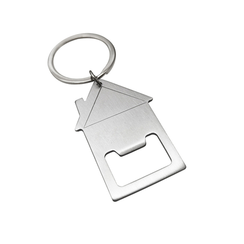 Chaveiro de aço inoxidável, logotipo personalizado promocional casa chaveiro abridor de garrafa